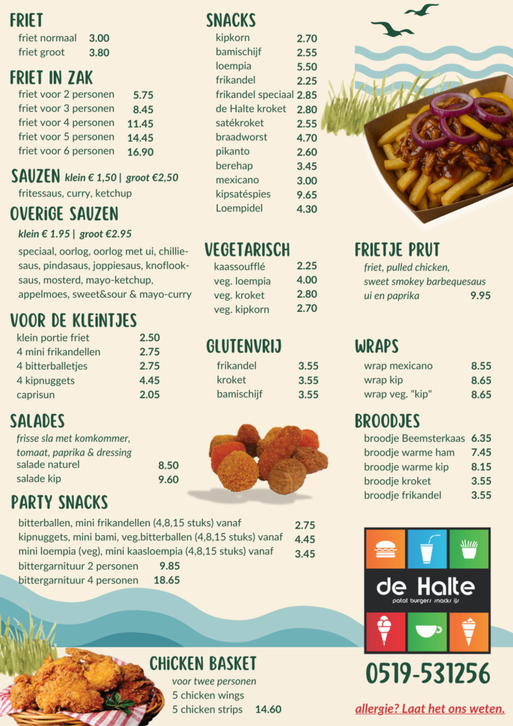 Mededeling: wij bezorgen niet. U kunt uw bestelling wel doorbellen (0519-531256) voor 17:00 uur en dan later ophalen.